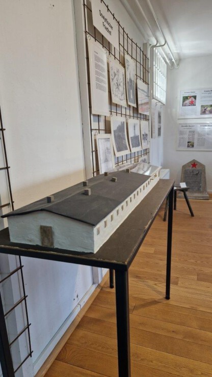 Anschließend führte Oliver Nickel die Regionalpolitiker über das weitreichende Gelände. Vor Ort erläuterte er auch die baulichen Herausforderungen der Einrichtung am Beispiel des Entlausungsgebäudes, welches noch aus der Anfangszeit des Lagers stammt und sich weitestgehend im Originalzustand befindet.