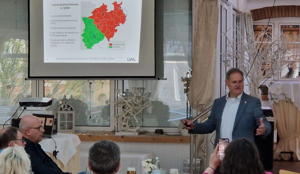 Ein inhaltlicher Schwerpunkt dieser Sitzung war der LWL und die Frage, was denn mit der Umlage der Kreise und kreisfreien Städte alles gemacht werde. Dazu war Arne Hermann Stopsack als Fraktionsvorsitzender nach Ennepetal gekommen und stellte in einem Vortrag den Landschaftsverband Westfalen-Lippe, seine Geschichte, Strukturen, Aufgaben und Herausforderungen vor. Dabei ging er besonders auf die Arbeit der gemeinsamen Fraktion ein. In der sich anschließenden Diskussion rückten Prof. Dr. Reinbold und Stopsack besonders Fragen aus dem Bereich Gesundheit und Soziales in den Mittelpunkt.