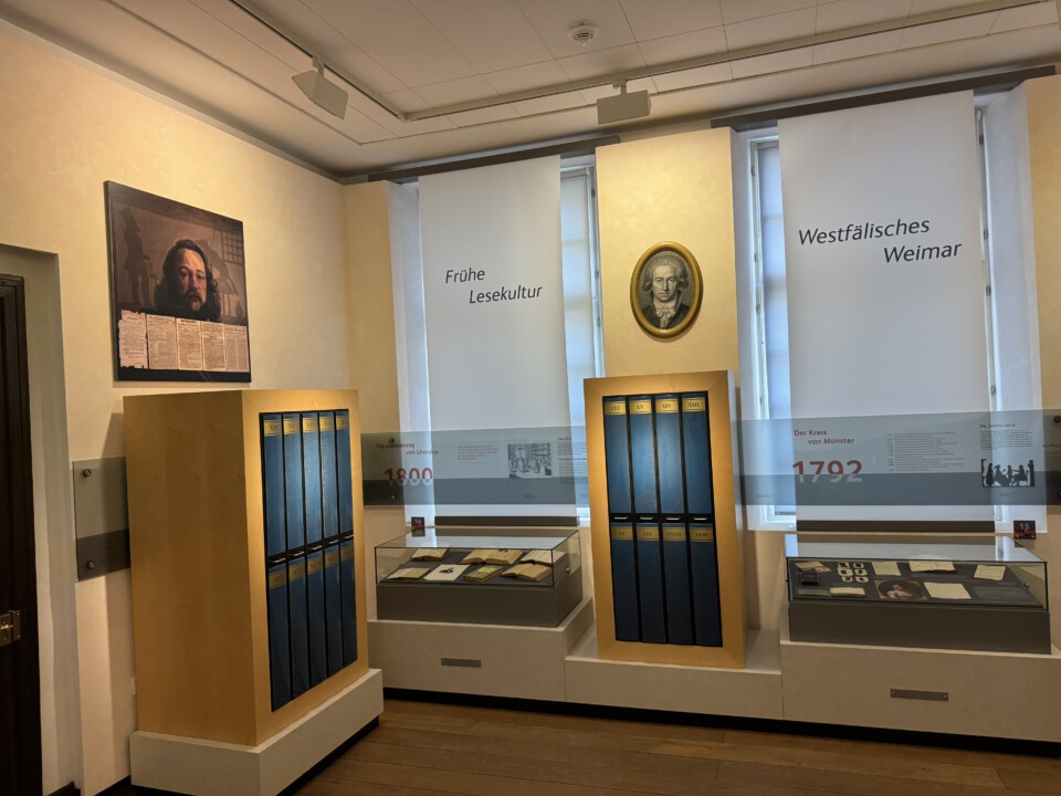 Das Museum verfolgt ein innovatives Konzept: Literatur wird nicht nur ausgestellt, sondern visualisiert und inszeniert. Die Dauerausstellung führt die Besucher durch die westfälische Literaturgeschichte von den Anfängen bis zur Gegenwart. Dabei werden Themen wie „Fanatismus und Aberglaube“ oder „Voltaires Westfalenspott“ behandelt. Multimediale Elemente wie Hörinseln im Park und ein Cyber-Room mit Touchscreen-Informationen ergänzen die Ausstellung.