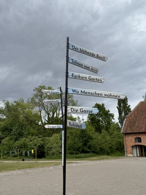 Zum Museum gehört ein großes und vielgestaltiges Außengelände, auf dem sich aktuell Kunstinstallationen mit einem Bezug zur Literatur befinden.